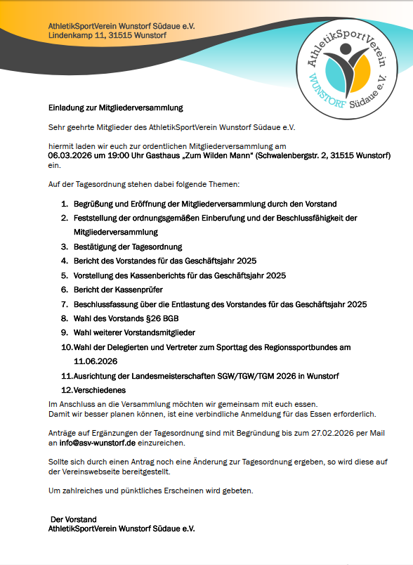 Ein Weihnachtsturnen das Herzen berührt. Gemeinsam. Bewegend. Unvergesslich! Liebe Vereinsmitglieder, liebe Freunde und Unterstützer des ASV Wunstorf Südaue,...weiterlesen