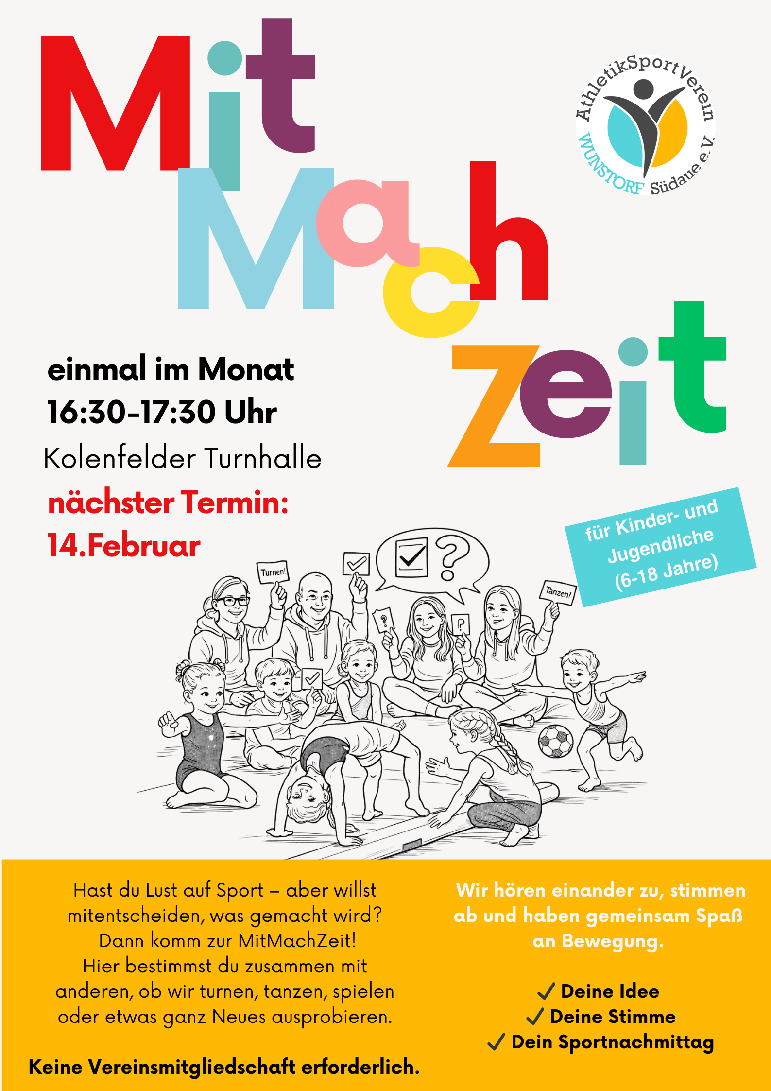 Erste „MitMachZeit“ begeistert Kinder und Jugendliche – Demokratiebildung trifft Bewegung Am Samstag, den 31. Januar 2026, fand beim Athletiksportverein Wunstorf...weiterlesen