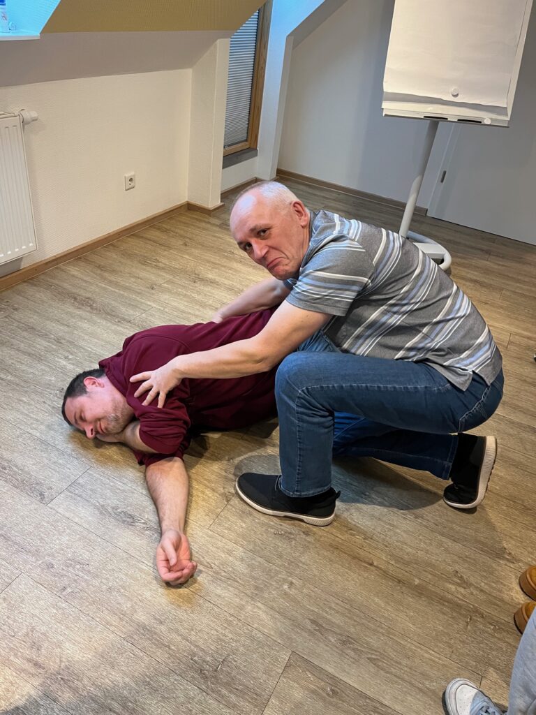 Unter der hervorragenden Leitung unseres Ausbilders Norman Brockhoff, der mit viel Fachwissen, Humor und Geduld durch den Tag führte, tauchten wir tief in die Welt der Ersten Hilfe ein. Norman verstand es, selbst komplexe Themen verständlich zu erklären und gleichzeitig eine Atmosphäre zu schaffen, in der wir uns wohlfühlten und gerne mitmachten. Ein ganz großes Dankeschön an ihn – ohne ihn wäre dieser Tag nicht so großartig geworden!